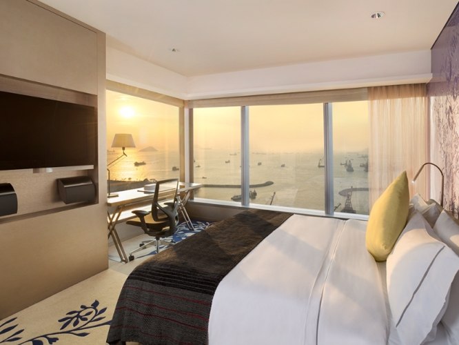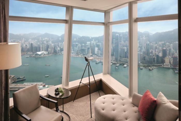 酒店介紹:位在環球貿易廣場頂層,全球最高飯店之一。房間設計簡約時尚,落地窗看維港超震撼。但高樓層風大,恐高者慎選(我住時遇颱風,窗戶晃得我心驚)。