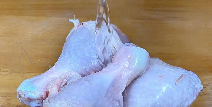 1.準備三到四個雞腿,用鹽搓洗乾淨,然後再放入清水中浸泡20分鐘,去除一下血水。
