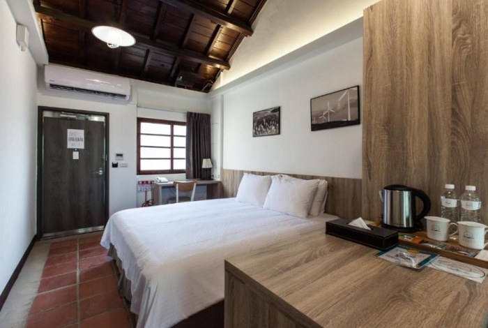 - 介紹: 這間也是走藝術風,但更偏向「軍事元素結合藝術創作」。老闆是藝術家,將廢棄的軍營、碉堡改造成充滿創意和反戰意涵的藝術空間。房間設計感強,運用許多回收材質和軍事遺留物再創作,非常獨特!喜歡另類、工業風、藝術裝置的旅人會很驚豔。地點離市區有點距離(騎車約15分),在 興仁水庫附近,環境清幽。網友評價兩極,愛其特色的很愛,覺得風格太冷硬或不夠舒適的也有。主人很有想法。缺點?風格小眾,位置稍偏,機能不便。