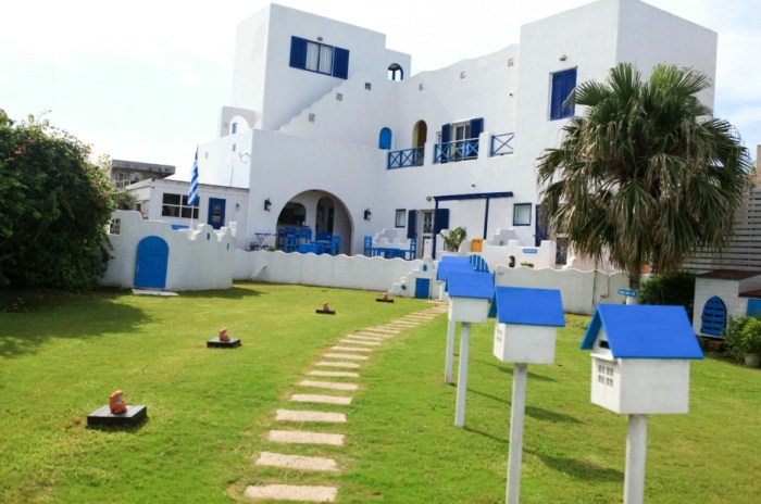 - 介紹: 藍白風情不用飛愛琴海!這間也是澎湖老字號的「希臘風」代表民宿之一。藍頂白牆,搭配藍天大海,非常有度假感。房間多是清爽的藍白色系,空間寬敞。公共區域(如陽台、泳池區)是拍照熱點。位置在 馬公市郊的「五德」,視野好,較安靜。網友評價普遍不錯,尤其喜歡其鮮明的主題風格。缺點?同樣地點需租車/機車。部分設施可能稍舊(但維護尚可)。風格見仁見智。