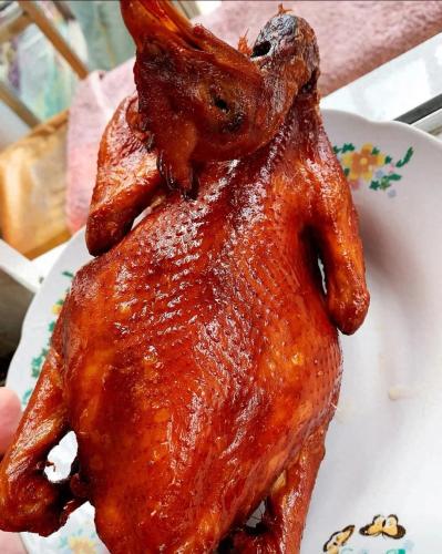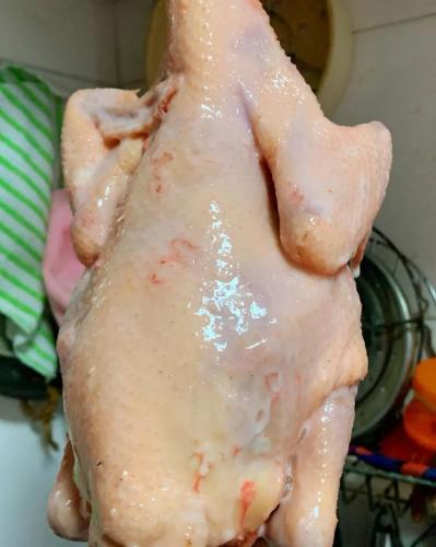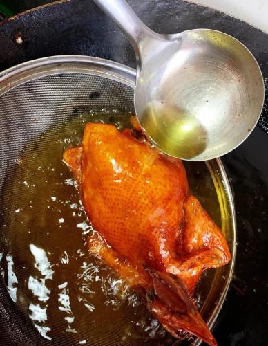 秘料:白醋、麥芽糖調製的脆皮水,八角、沙姜、玫瑰露酒等醃料