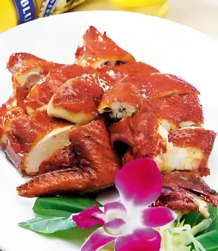 這道菜以金紅酥脆的外皮、嫩滑多汁的肉質聞名,其製作工藝凝聚了粵菜"色香味形"的精髓,更因"紅皮赤壯"的吉祥寓意,成為新春餐桌上象徵強健興旺的必選佳餚。