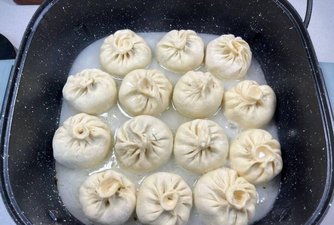 平底鍋底部刷上一層食用油,把每個小包子擺放在裡面,然後淋入麵粉水(麵粉水調成牛奶適度就可以,千萬不要太稠),麵粉水要沒過包子二分之一來,然後蓋上鍋蓋煎12-15分鐘就可以。