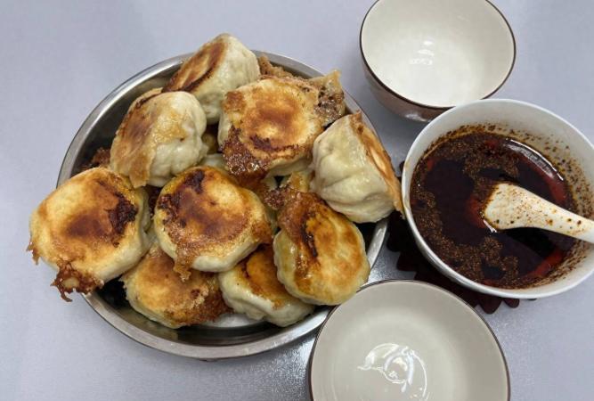 煎到點後掀開鍋蓋,喜歡吃白芝麻的可以撒點白芝麻,把煎好的水煎包取出來就可以。茴香菜做成水煎包外酥裡嫩,鮮美好吃,比蒸包子、包餃子好吃還省事,太香了。