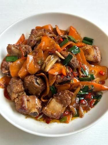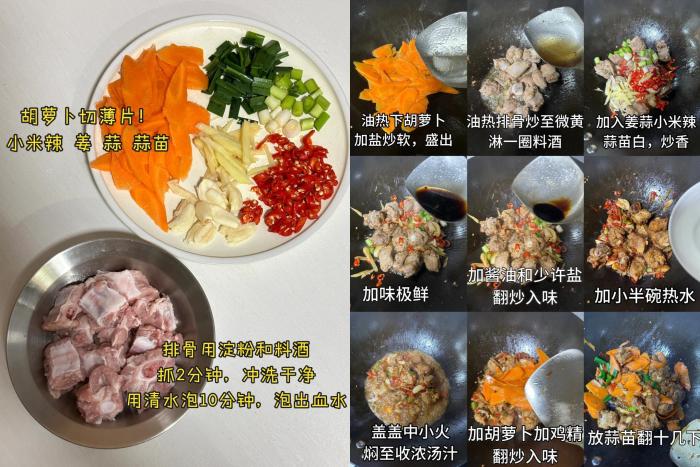 食材:排骨、胡蘿蔔、小米辣、姜、蒜、蒜苗