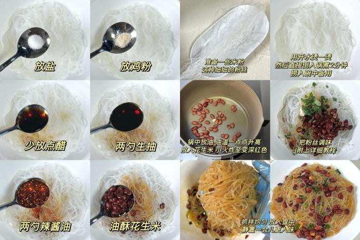 食材:細粉絲、花生米、小蔥